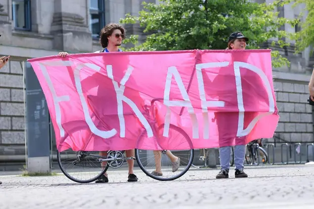Perché Weidel è riuscita a rispondere soltanto con grande difficoltà alle domande del suo interlocutore, che spesso non riusciva a sentire. La causa? Una protesta a tantissimi decibel: le interviste si svolgono su una terrazza di fronte al Reichstag, peccato che il Zentrum für politische Schönheit, un’associazione interamente dedita alla lotta ad AfD, abbia deciso di organizzare un carro che ha trasmesso con casse molto molto potenti l’inno del popolo antifa Scheiss-AfD (“AfD di merda”), canto angelico che ha accompagnato le polemiche contro tutte e tutti sollevate da Weidel.