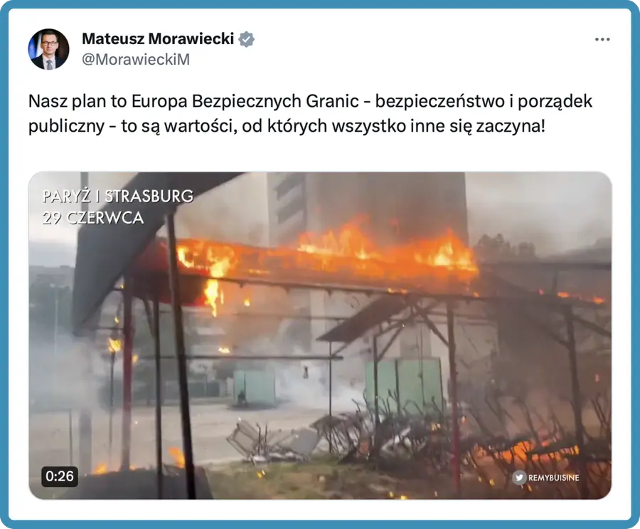 BUDAPEST - Nanterre e Marsiglia, Francia, 28 giugno: automobili in fiamme e negozi saccheggiati. Cracovia, Polonia, 28 giugno: donne che passeggiano tranquillamente sotto il sole. Sono le scene di un video condiviso su Twitter dal primo ministro polacco Mateusz Morawiecki durante i disordini francesi.