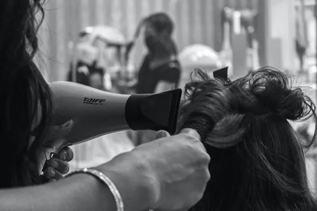 La prima impressione tricologica non è delle migliori: ci sono due ragazze al lavoro, una con una frangia tagliata molto male che sta per fortuna alla postazione unghie, l’altra sta facendo una piega a una signora con dei capelli davvero malridotti, come di una Barbie sopravvissuta a un incendio, che spero con tutta me stessa fossero già così prima di quella phonata. Finisce poco dopo, paga e ringrazia, quindi mi convinco che sia soddisfatta del servizio e mi affido alla ragazza che con un gesto perentorio mi conduce alle poltrone per il lavaggio.