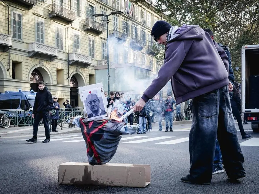Oggi siamo in piazza e scioperiamo contro questo sistema scolastico. Ma siamo qui anche e soprattutto per protestare contro questo governo di fascisti. Non possiamo accettare che venga limitata la nostra libertà di espressione, non possiamo non lottare contro i provvedimenti liberticidi che il governo Meloni ha varato negli ultimi mesi, dal decreto rave fino al ddl sicurezza. Il ddl sicurezza punta a instaurare nel Paese uno stato di polizia: un decreto che aumenta le pene e criminalizza persino le manifestazioni pacifiche istituendo il reato di blocco stradale. Un decreto che ostacola gli scioperi e reprime persino chi è già represso nelle carceri e nei Cpr, aumentando ancora una volta le sanzioni per chi si ribella. I nostri compagni hanno deciso di ammanettarsi e di posizionarsi di fronte alle forze di polizia per mettere in evidenza, davanti ai loro occhi, l’incoerenza di queste misure.