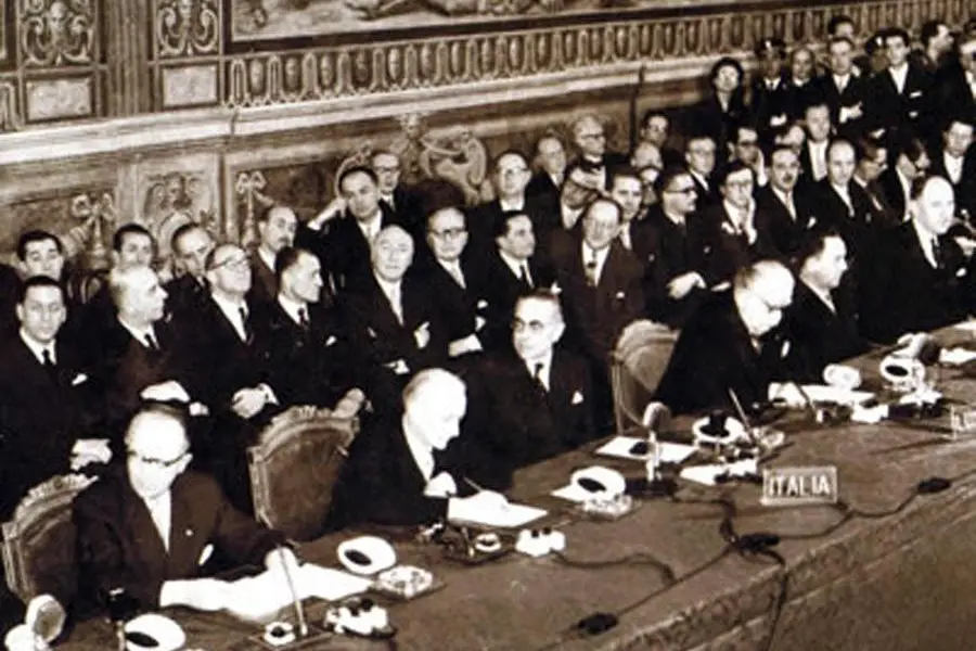 L’Europa è nata in Italia. Non solo per l’alto contributo ideale e culturale che venne dal Manifesto di Ventotene, ma anche sul piano formale e sostanziale con l’atto di costituzione della prima forma di futura unione. Il 25 marzo del 1957 nella sala degli Orazi e dei Curiazi del Campidoglio i sei paesi fondatori procedettero al varo della Comunità economica europea che rappresentò il fulcro del disegno europeista, a coronamento del primo passaggio, ossia la Ceca istituita nel 1951 a Parigi. La