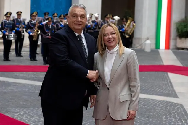 «Incontrare la premier a Roma è stato grandioso!», ha commentato questo lunedì, andando via da Palazzo Chigi, l’autocrate ungherese Viktor Orbán, che il giorno dopo – per non lasciare scoperto l’alleato dei Patrioti – si vede anche con Matteo Salvini. «Abbiamo parlato della guerra, dell’economia europea che arranca, dei prezzi dell’energia e della migrazione»: fin qui il resoconto rispecchia piuttosto fedelmente la versione concordata e la nota di Chigi. Solo che poi Orbán va fino in fondo: «Sta