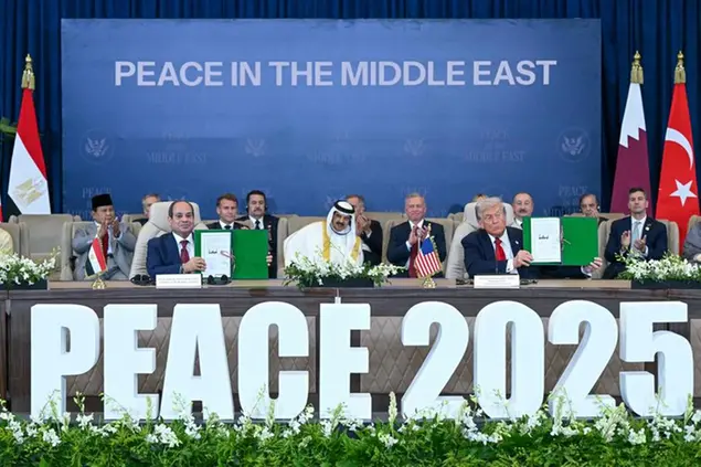 «Non c'è un altro modo di dirlo, è la pace in Medio Oriente», ha detto Trump ai giornalisti seduto di fianco ad al-Sisi. Dopo i saluti, il presidente Usa si è recato sul palco dove ha stretto le mani a ogni leader venuto a Sharm el Sheikh. Nella passerella finale era presente anche il presidente della Fifa, Gianni Infantino, per motivi non meglio specificati. Assente Netanyahu, dopo che in un primo momento è circolata la notizia che sarebbe volato anche lui nella città costiera egiziana.