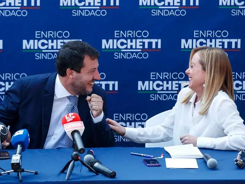 Elezioni comunali, la destra si consola con il finto abbraccio tra Meloni e Salvini