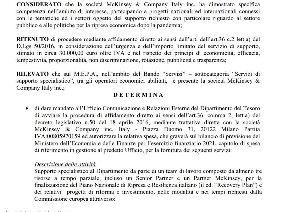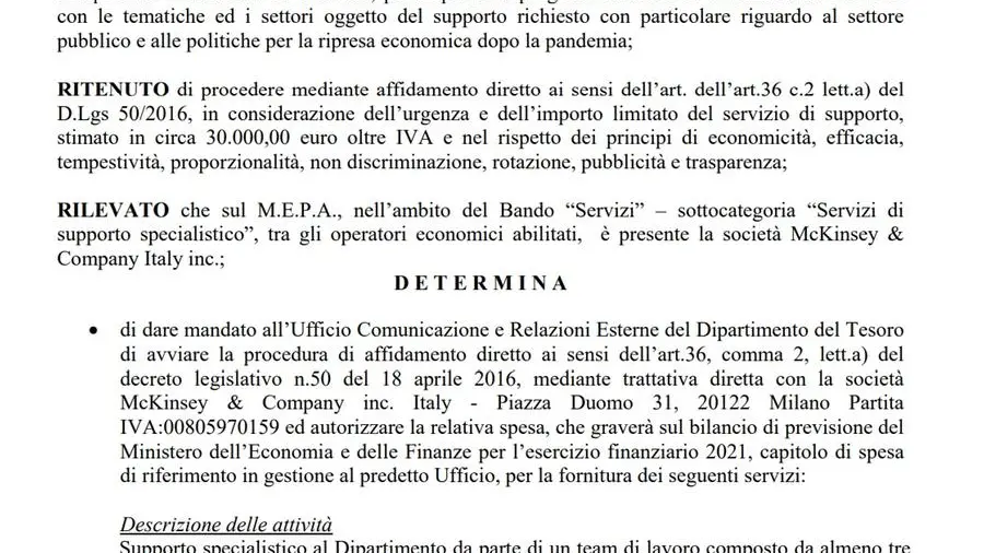 Ecco il contratto da 30mila euro tra il governo Draghi e McKinsey